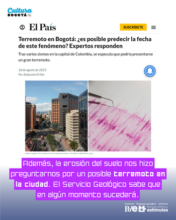 Es una experiencia ganadora de la beca ESTRATEGIAS NOVEDOSAS 2024 de la Secretaría Distrital de Cultura, Recreación y Deporte, de 12 semanas en modalidad híbrida (presencial/digital), dirigida a jóvenes de entre 13 y 23 años para realizar una lectura comprensiva de la ciudad de Bogotá e identificar situaciones problema que sirvan de punto de partida para especular y/o imaginar otros futuros posibles mediante una historia de Ciencia Ficción y la experimentación con diferentes herramientas de Inteligencia Artificial.